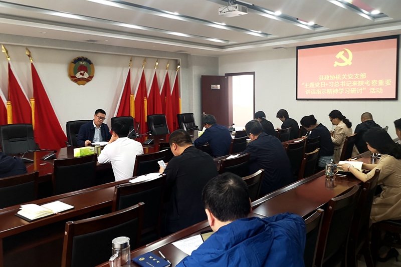 5月8日,县政协机关党支部开展5月份“主题党日+习总书记来陕考察重要讲话重要指示精神学习研讨”活动。